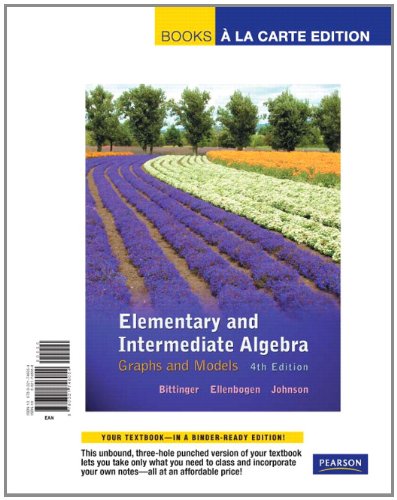 Books a la Carte Edition, Elementary and Intermediate Algebra: Graphs and Models (4th Edition), by Marvin L. Bittinger, David J. Ellenboge